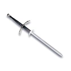 Our Two Handed Great Sword is the biggest sword we make. But dont let its size fool you, as there is nothing awkward or clumsy about this awesome sword. Sure its big and meant to be carried over the shoulder instead of in a scabbard, but its extremely well balanced and easily wielded by people of larger stature and physical strength. Weighing 6 lbs. 13.5 oz. with a 39 7/8" high carbon steel blade, it will make short work of pikemen or swordsmen and will prove equally effective against modern rifle butts and bayonets. To protect the hands from opposing weapons, it features a large guard with side rings plus integral parrying hooks that allow the blade to be shortened for close range slashing and stabbing attacks. The handle is made of wood and covered with leather and is extra long to afford a full two handed grip. Whats more, its capped by a heavy steel pommel that helps counter balance its long blade and serves as an effective weapon in its own right. The Two Handed Great Sword is sturdy, strong and battle ready. If youre looking for the ultimate in big performance oriented swords, your search is over. Specifications: Weight: 109.5 oz Blade Thick: 7/32" Blade Length: 39 7/8" Steel: 1055 Carbon Overall Length: 55 1/4"