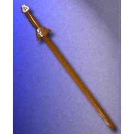 Exquisitely hand carved guards accentuate this wooden sword. Crafted of finished walnut wood (sanded and lacquered). Overall Length: 36 inches. Blade Length: 27 inches.