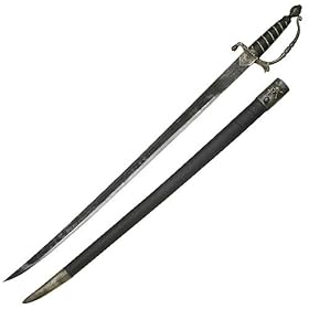 If you have not noticed it lately...Pirates are hot!! So, don't be left out in the cold! This new cutlass sword has everything a brave pirate needs to fight those who would oppose. Equipped with a 29 1/4" blade constructed from steel with an authentic aged bronze finish. The classic black handle with a bronzed steel wire wrap is accented with cast metal bronzed guard and pommel. The wooden scabbard features a bronzed cast metal throat with pirate emblem. 38" overall