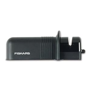 The Fiskars axe and knife sharpener features a patented ceramic wheel to effectively and easily sharpen axes and knives at an exact 30-degree angle. The sharpener is built for safety as well, with a built-in hand guard and non-slip feet. It is covered by a lifetime warranty.